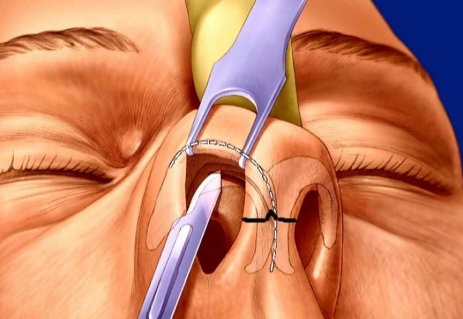Септопластику выполняют под наркозом или местным обезболиванием. Это зависит от вида вмешательства и реакции пациента на боль. Хирург надрезает в носу слизистую оболочку и удаляет лишнюю ткань. Затем выпрямляет носовую перегородку, накладывает швы на слизистую оболочку. После этого вводит в носовые ходы специальные тампоны.