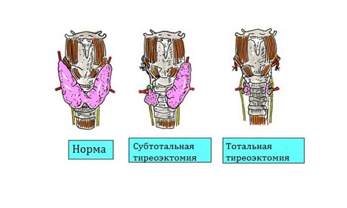 Операция в большинстве случаев проводится с открытого доступа. После выполнения разреза кожи хирург выводит в операционную рану щитовидку, перевязывает и пересекает сосуды. После смещения железы выделяет возвратный нерв и паращитовидные железы. После иссечения щитовидки удаляет лимфатические узлы, сшивает шейные мышцы, устанавливает дренаж из силиконовой трубки и накладывает косметический шов. Оптимальный косметический эффект хирурги – эндокринологи достигают, выполняя операцию с помощью эндоскопа.