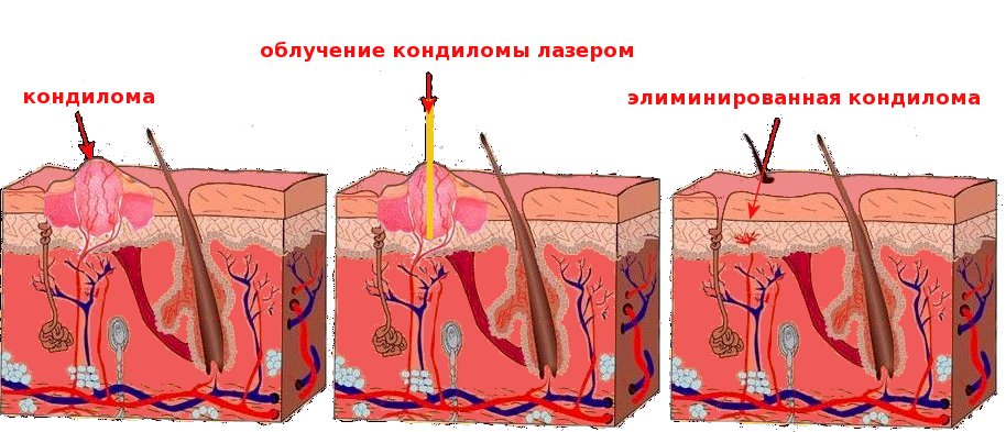 Врач наносит на слизистые оболочки крем, который содержит местноанестезирующее средство. Затем направляет лазерный луч на остроконечную кондилому. Влага из тканей испаряется. Образовавшаяся корочка отпадает самостоятельно.
