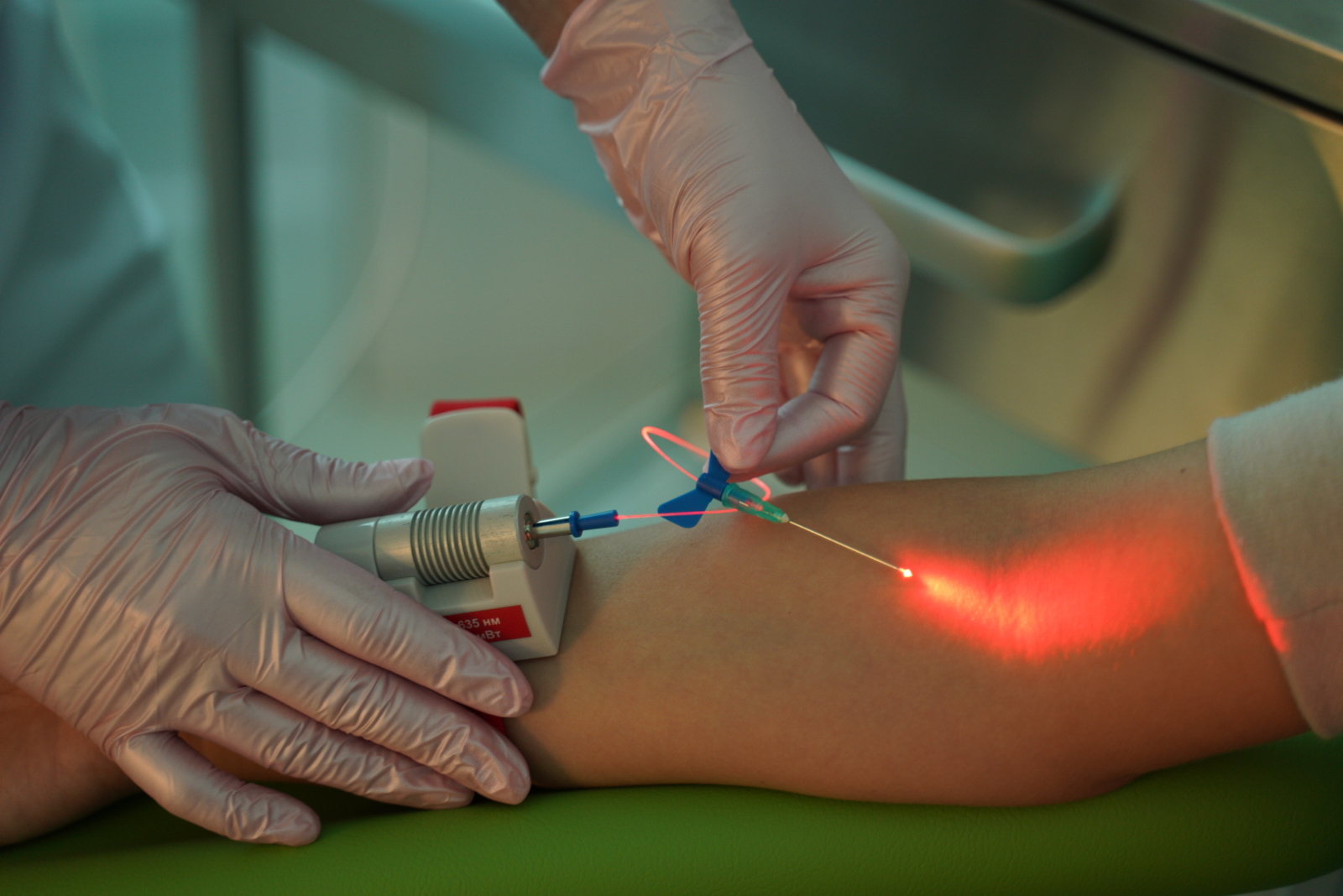 Во время проведения процедуры пациент лежит на спине. Врач выбирает наиболее контурируемую вену в локтевой ямке правой или левой руки и, после обработки кожи раствором современного антисептика, пунктирует сосуд стерильной иглой. К ней фиксирует волновод, через который проходит красный цвет в кровеносный сосуд. На таймере прибора выставляют время продолжительности процедуры. По окончании сеанса аппарат отключится самостоятельно.